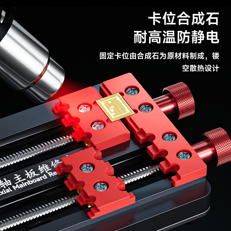 错位卡扣设计,加粗精密螺杆,夹持力稳固,螺纹加大卡扣,位移更方便